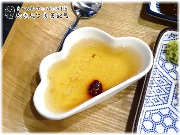 甜品是桂花蘋果凍,味道比較像是以蘋果醋製作的果凍,質地比較硬了一點…