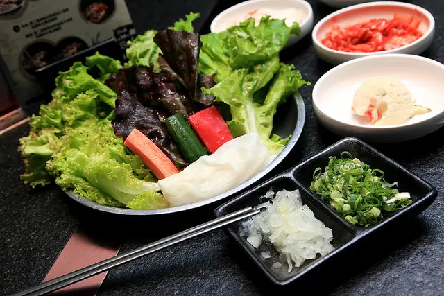 蔥鹽、洋蔥末、生菜盤,等等可以搭配韓式燒肉一起食用~