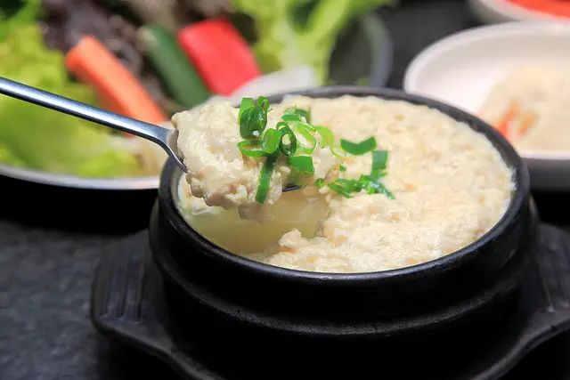 韓式蒸蛋看起來鼓鼓澎澎好鬆軟的樣子,清潭洞在蛋中加入了高湯