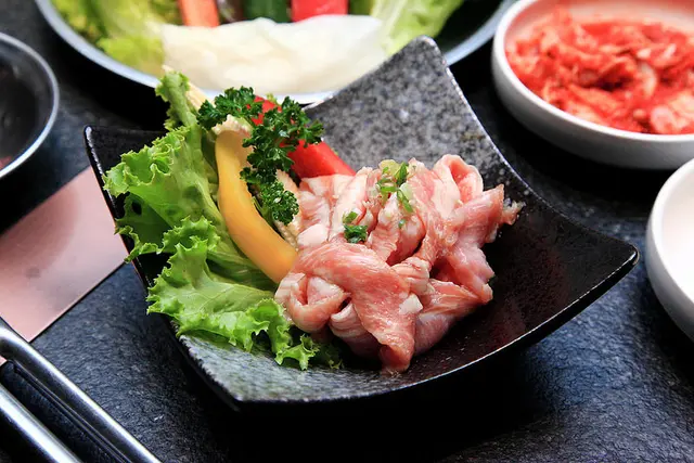 豬五花也很適合包著生菜一起食用,清潭洞的生菜真的好吃,水分多又爽脆