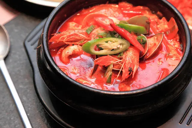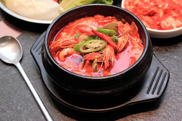 清潭洞的超人氣款,來的客人幾乎都會點上一鍋,看來紅豔的湯頭似乎是很重口味!