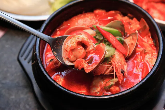 裡面加了很多配料跟海鮮的關係,湯頭喝起來很鮮甜,海鮮料吸收了微辣湯底,口感超夠味的