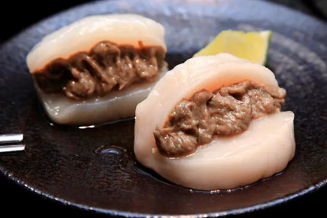 這道蟹膏干貝超奢華,這道不用烤直接生吃~