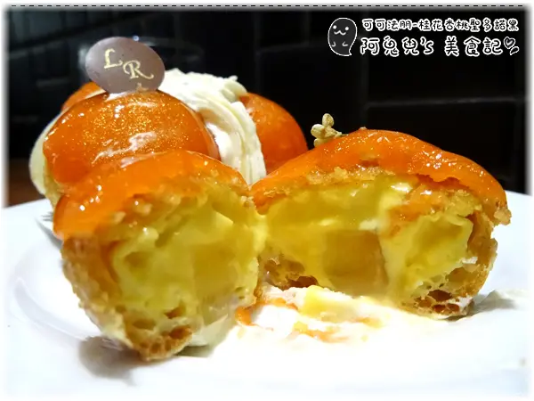 杏桃果泥讓泡芙口感很滑順,中間還有酸度明顯的百香果泥,吃起來更不甜膩