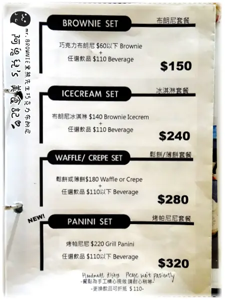 多了內用區,在餐點上也有更多選擇,除了布朗尼之外還有飲品及帕尼尼等