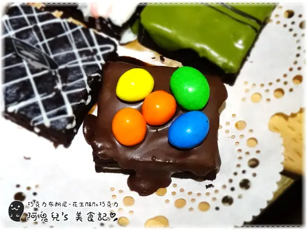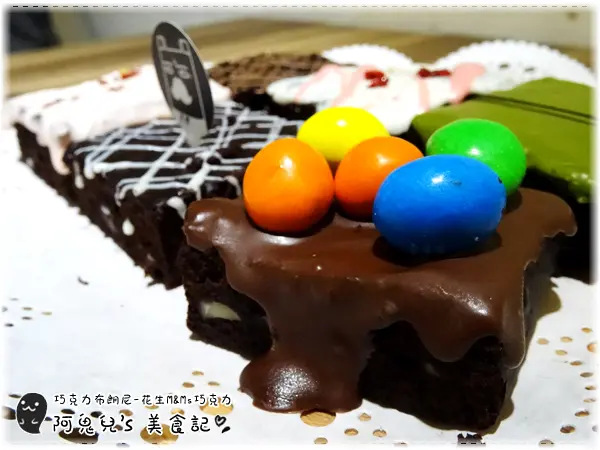 像這款「花生M&Ms巧克力布朗尼」就是加入花生烘烤,以花生布朗尼為基底