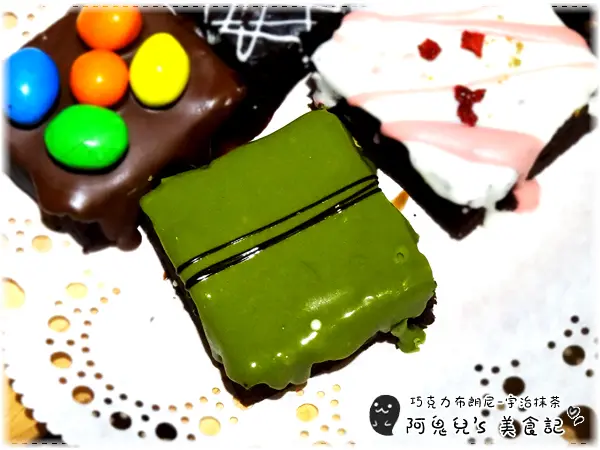 基底是巧克力布朗尼混入宇治抹茶與巧克力豆,還能吃到巧克力的顆粒口感