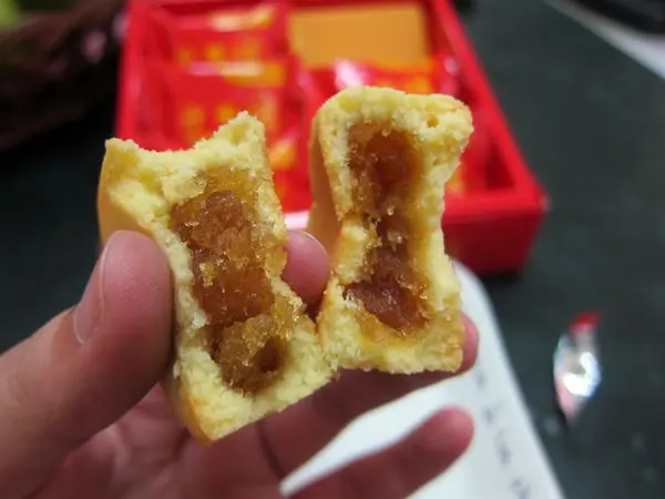 而中間的鳳梨絲不帶酸,取而代之的是冬瓜糖的淡淡甜