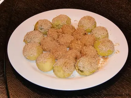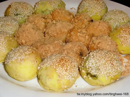 餅皮染有韭菜淡綠色的酥餅也別有風味~