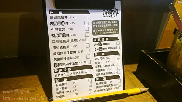 燒丼的菜單很簡潔明了,主要就是豬肉片、牛肉片、雞腿等六種燒肉丼,單點丼飯都有附贈味噌湯,加點任瓶裝飲料只要30元,若還要更豐富的話,搭配配菜加飲料也只要60元!