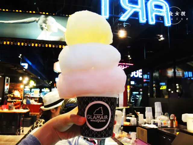 GLAM AIR的棉花糖冰淇淋很酷,在最底層有放置乾冰處,剛拿到時,整個都在冒煙XD 本人比想像中還要小一些、顏色也沒有那麼鮮豔,今天彩虹三個口味分別是:黃色-柳橙、綠色-哈密瓜及粉紅-草莓,每次來不一定都這三個口味,會依照當季水果更換。吃掉最上層棉花糖後,就可以看到底下的霜淇淋了。而中間那層店員說是綠色,超級淡的綠色,但吃起來有淡淡的哈密瓜香味。GLAM AIR的冰淇淋不只是冰淇淋,裡頭還有放跳跳糖和玉米麥片,棉花糖加鮮奶冰淇淋一起含在嘴裡啵啵跳的感覺蠻有趣,鮮奶冰淇淋中放入玉米麥片,吃起來蠻像早上配牛奶的fu~ 整體來說,比傳統棉花糖來的好吃,尤其是加入跳跳糖和麥片有加分效果,雖然吃到最後都有點甜膩 >< 但偶爾就是要吃甜點,讓自己開心阿~