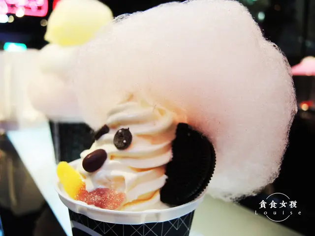原本沒有想點它的,但想看他照片和本人是否一樣~結果是一樣的,而且本人也太勾椎了拉XD 最上層的棉花糖(粉紅-草莓)是他的假髮,一吹就掉的那種,拿到假髮超像一隻小狗,旁邊是OREO餅乾,GLAM AIR把小丑做的唯妙唯俏,和彩虹棉花糖冰淇淋不同的是,小丑的冰淇淋中沒有跳跳糖,但多了OREO和各式軟糖。下面霜淇淋選擇香蕉牛奶口味,比原味(鮮奶)口味更加甜,香蕉味道也很濃郁,只是對露易絲來說會有點太過甜膩><