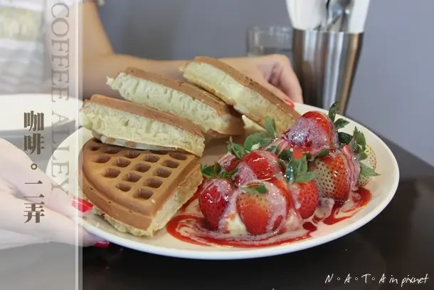 咖啡弄(COFFEE ALLEY)是近年來在網路迅速爆紅的一間咖啡輕食館,目前一共開了四間,備受推崇的就是該店的夢幻鬆餅,其中又以時令推出的「草莓冰淇淋鬆餅」最受歡迎,另外無論是三明治還是各種咖啡茶飲,味美質佳、擺盤精緻,讓巷弄裡這間外觀樸實的咖啡館,廣獲名人、部落客、美食節目大幅推薦報導。其魅力究竟何在?相信看過了招牌推薦便能明白門庭若市的原因。