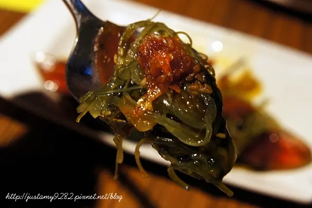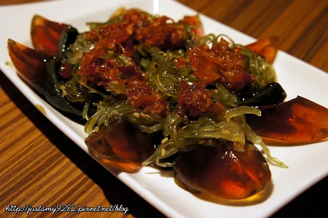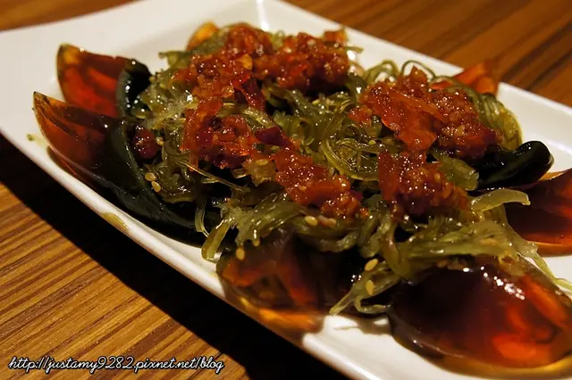 皮蛋搭上海帶芽再配上少許の櫻花蝦辣椒醬