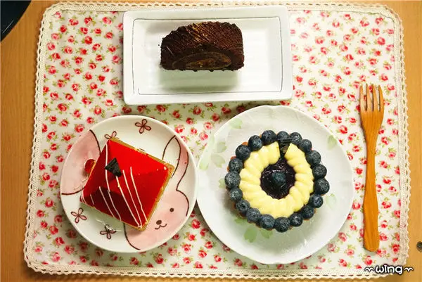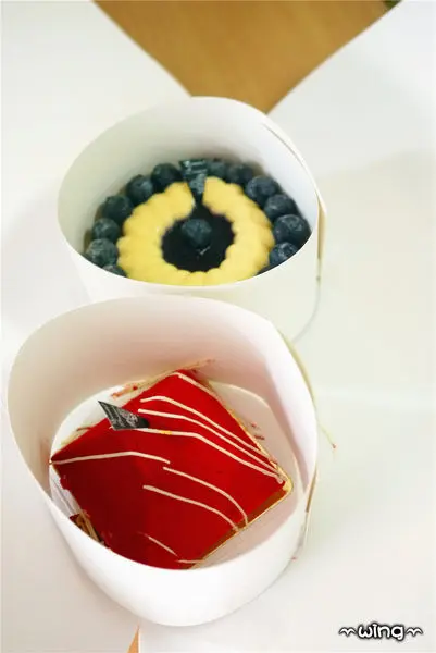 帶回了長條的黑絲綢蛋糕,及兩個包裝在一起的passion、午夜藍塔。