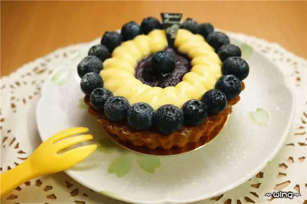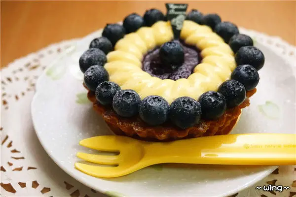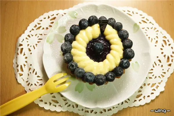讓塔皮內層濕潤、鬆酥而不乾,中間再放入香草奶醬以及新鮮的藍莓果醬,