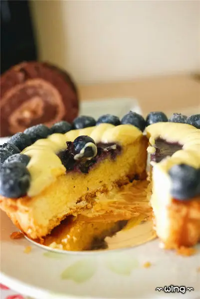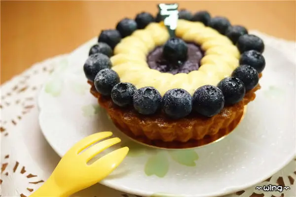 最外層再放上一顆一顆精心挑選的紐西蘭進口新鮮小藍莓環繞整個蛋糕。
