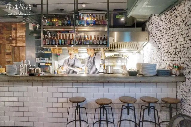 那專注做料理的神情,而這個吧台,完全跳脫一般酒館的木質感,反倒多了點文青味。