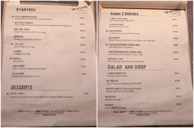 Waiting 的店名如同它的美食一樣,多了等待,讓人期待著異國料理以及各國精釀啤酒的搭配下的火花~