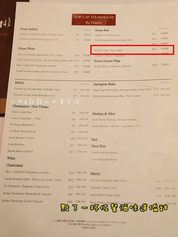 另外牛排狂人郭郭堅持一定要點紅酒配牛排,他點的是 NAPA VALLEY的HOUSE WINE