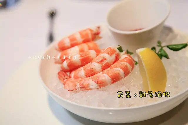 跟上一道的干貝比起來,雞尾酒蝦就比較平淡啦,就是燙好的蝦子冰過以後沾莎莎醬吃