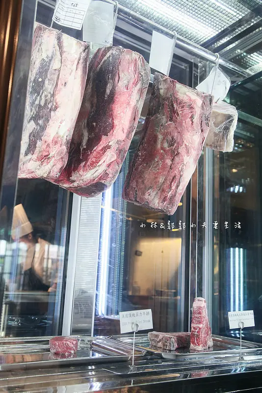 順便來的簡單的牛肉小教室: 乾式熟成簡單的說起來就是把牛排放到0度C恆溫恆濕的熟成室裡面,讓牛排類似低溫風乾的方式進行熟成 牛肉裡的蛋白酵素會破壞肌肉裡的組織,讓牛肉變的更鮮嫩