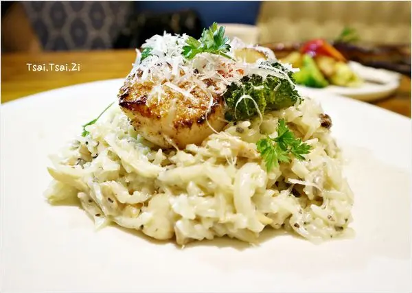 松露奶油干貝燉飯是里拉義大利廚房菜單上的人氣餐點,