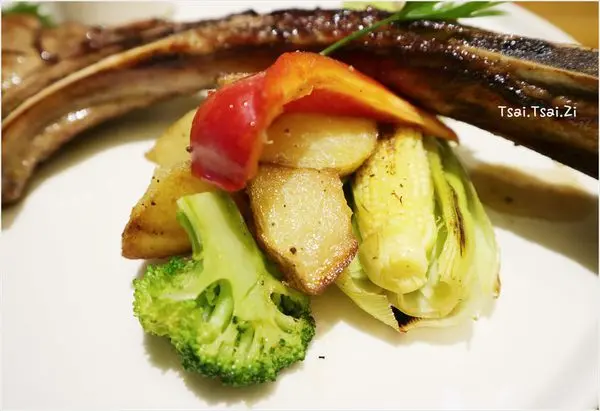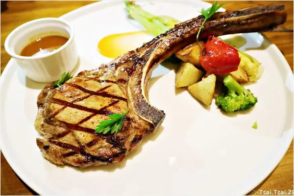 上桌後看了一下戰斧豬排的擺盤有用心,而且也有熱過盤子(加分)。