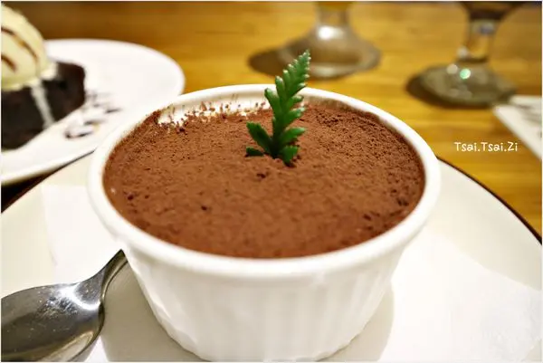 這個提拉米蘇好可愛,做成盆栽的樣子上面還有一片葉子,