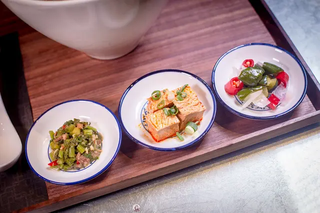 在晶華牛肉麵都是套餐,除了牛肉麵之外還有三品小菜,小黃瓜很脆,吃起來帶有微酸微辣的感覺,麻辣百頁豆腐,吃起來很嫩,辣度也是很剛好,還蠻喜歡雪裡紅的,有一點芥末感的辣度。