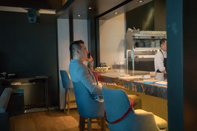 坐在吧檯的另一個特色是可以看到開放式廚房裡的每一位廚師熟練的料理美食