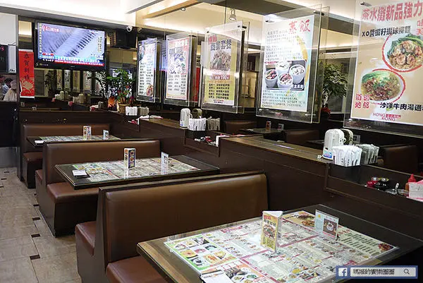 店內真的就很茶餐廳的風格,這裡統一為軟墊式的座位,2-4人都有,裡面光線明亮,打掃得也挺乾淨的,用餐環境讓人感覺寬敞舒適,而且還有電視可看。還好我來得稍微早一點,過了中午用餐時間一到,立馬就滿座了,大家吃飯都拼準時的。