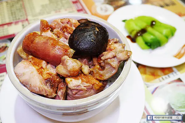 「臘腸北菇雞蒸飯」140元,這是我一直很想吃的一道港式蒸飯,用瓷盅盛裝滿滿的飯,再配上滿滿的料,份量十足!這道港點傳統蒸飯,其實是為了讓早期的勞動者方便能吃飽好工作,而承襲至今的特色餐點。