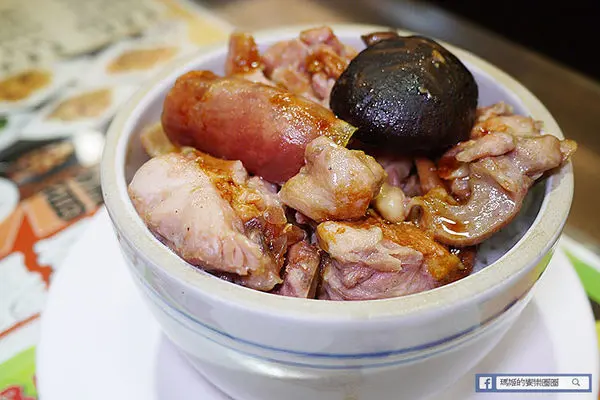 而這雞肉燒得十分入味,而且擺上好幾塊,肉也很多,吃起來幾乎不費力就可咀嚼吞下,肉質軟嫩多汁,非常可口,讓人欲罷不能!而臘腸一口咬下也好脆口,味道很香,美味無限。