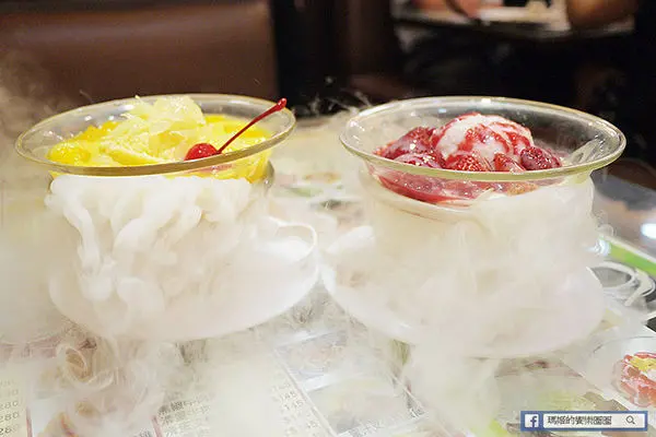 哇!甜點上桌囉,送上來時還有乾冰做效果!頓時讓人暑氣全消。