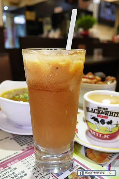 「凍鴛鴦」90元,這也是香港道地的飲品,以咖啡和奶茶做結合,喝起來口感頗為濃郁,加入冰塊,充滿清涼的飲料。