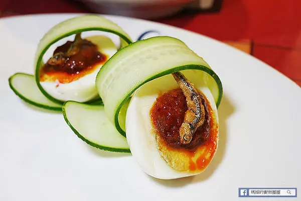 「嬤嬤森巴蛋」40元,以水煮蛋加上獨家醬汁,搭配小魚乾,再以小黃瓜片裝飾,也是一道清爽又美味的小菜,我個人喜歡蛋料理,覺得還不錯喲!
