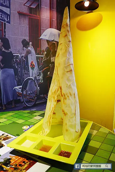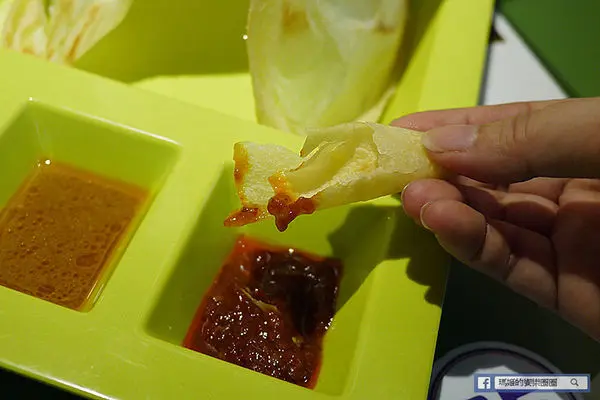 撕下來吃時發現它像餅乾一樣酥,沾上鹹口味的咖哩醬或辣醬都很對味,喜歡吃甜食的朋友也可以把它當甜點來吃,這塔餅讓大人小孩都喜歡,同桌的小朋友吃得津津有味欲罷不能,就知道它受歡迎的程度