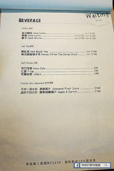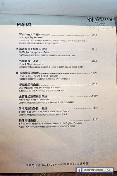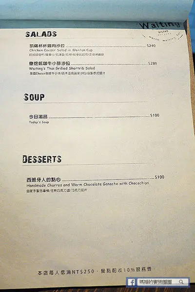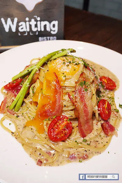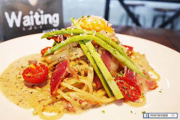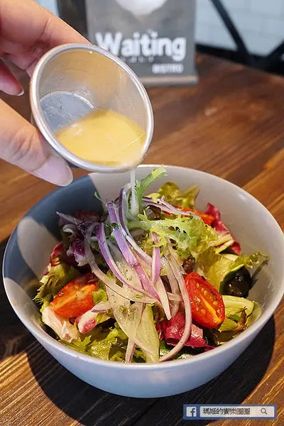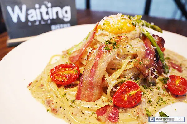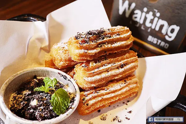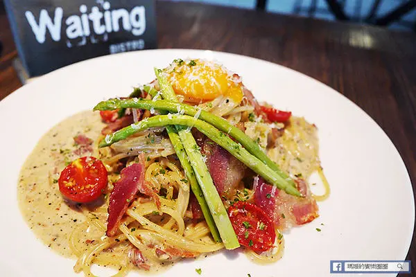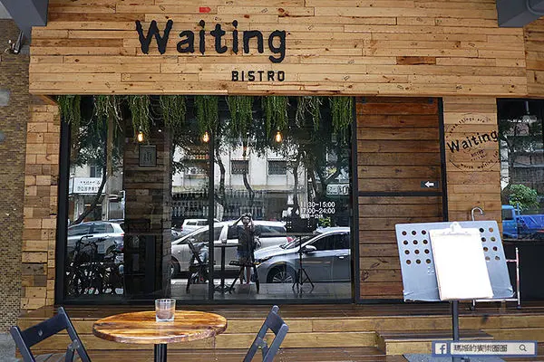 【Waiting Bistro】鄰近捷運忠孝復興站,從1號出口走出來,沿著安東街走到靠近市民大道,有座公園旁就可以看到以原木拼造的餐廳外觀,搭配大面落地玻璃窗,吊掛著綠色植栽,讓人有種舒活的快感。