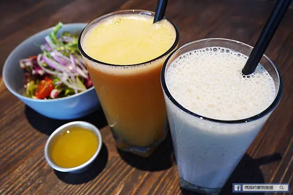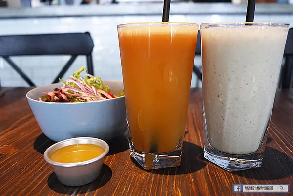 「蘋果胡蘿蔔汁」160元,喝起來滿是蘋果的香甜口感,比例上蘋果的成份居多,減去有人不喜歡胡蘿蔔汁的生澀味道,店裡的果汁都是現榨慢磨,真材實料。