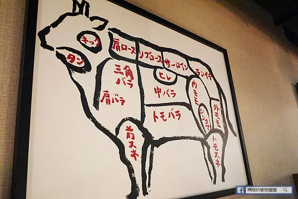 店裡有牛豬雞等每個部位的分析圖,讓顧客可以知道每種肉品的部位。