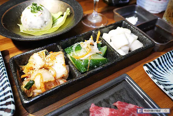 泡菜拼盤有韓式泡菜、涼拌小黃瓜和醃漬脆蘿蔔,都是每天新鮮現做的配菜,我覺得搭配燒肉套餐吃可中和一下口感,非常適合。
