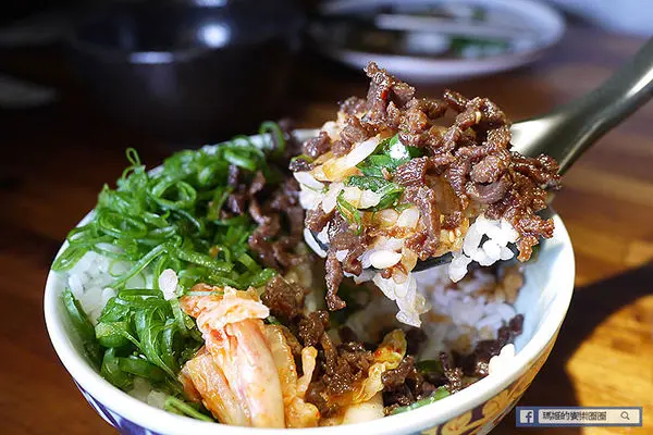 套餐搭配的牛舌飯,用舌尖的部位切碎加上特調醬汁下去熬煮,再搭配韓式泡菜和大量蔥花,聞起來香氣四溢。
