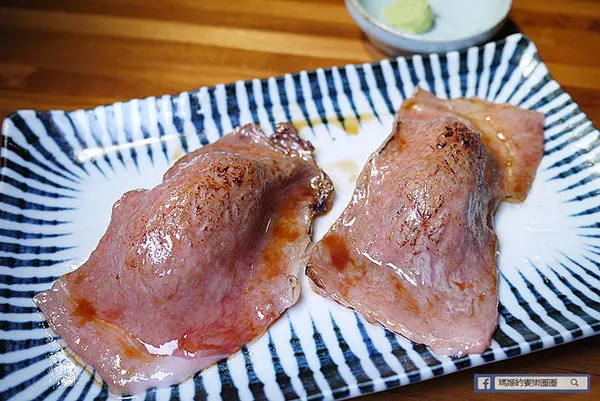 上牛舌根本身的肉質相對較嫩,和其它部位的口感不同,烤約七分熟是最佳口感,厚度也採厚切約一公分左右的厚度,這種高品質的肉品有經過專業訓練的服務人員現烤才不會暴殄天物。