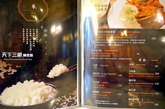 當晚汪喵點選了排骨飯,還附一碗湯品,裡面可以撈到不少玉米及蛋花,