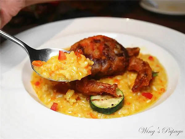 酥炸的軟殼蟹香酥可口,蟹黃燉飯嚐來是海味十足的美妙好滋味,味道我們都很喜歡。