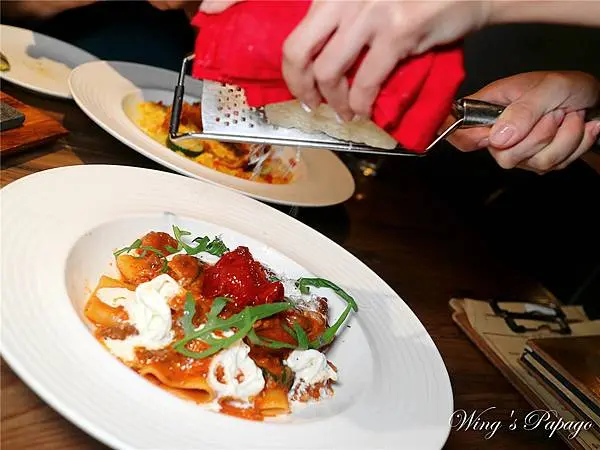 義式肉醬水管麵一開始送上桌時會有工作人員桌邊刨起司服務,感覺好特別!