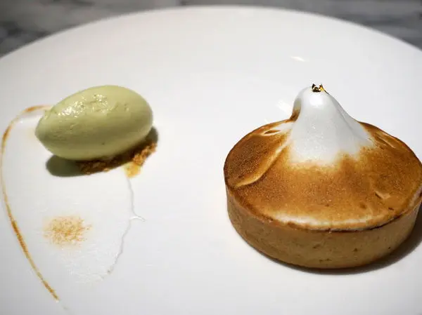 柚子奶油醬、開心果達克瓦茲、開心果碎片、開心果奶油醬
