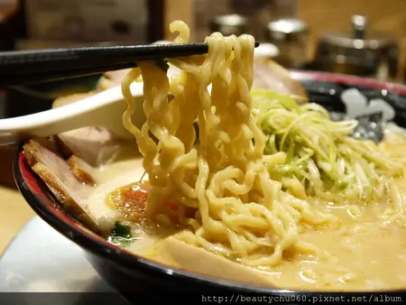 麵條是這種波浪型的捲捲拉麵 有點寬度 口感偏軟 還不錯吃!!
