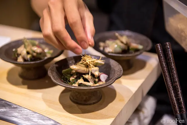 低調有質感的「懂不懂」位在延吉街上,店內僅提供八個吧台座位,如同私人招待所一般隱密。根據我的觀察,平日晚上的來客也都相當安靜低調。吧台前就能欣賞主廚精湛的廚藝、以及對食材的精心處理,頗有割烹板前的氛圍;年輕開朗的主廚和店長都相當健談,用餐過程非常愉快